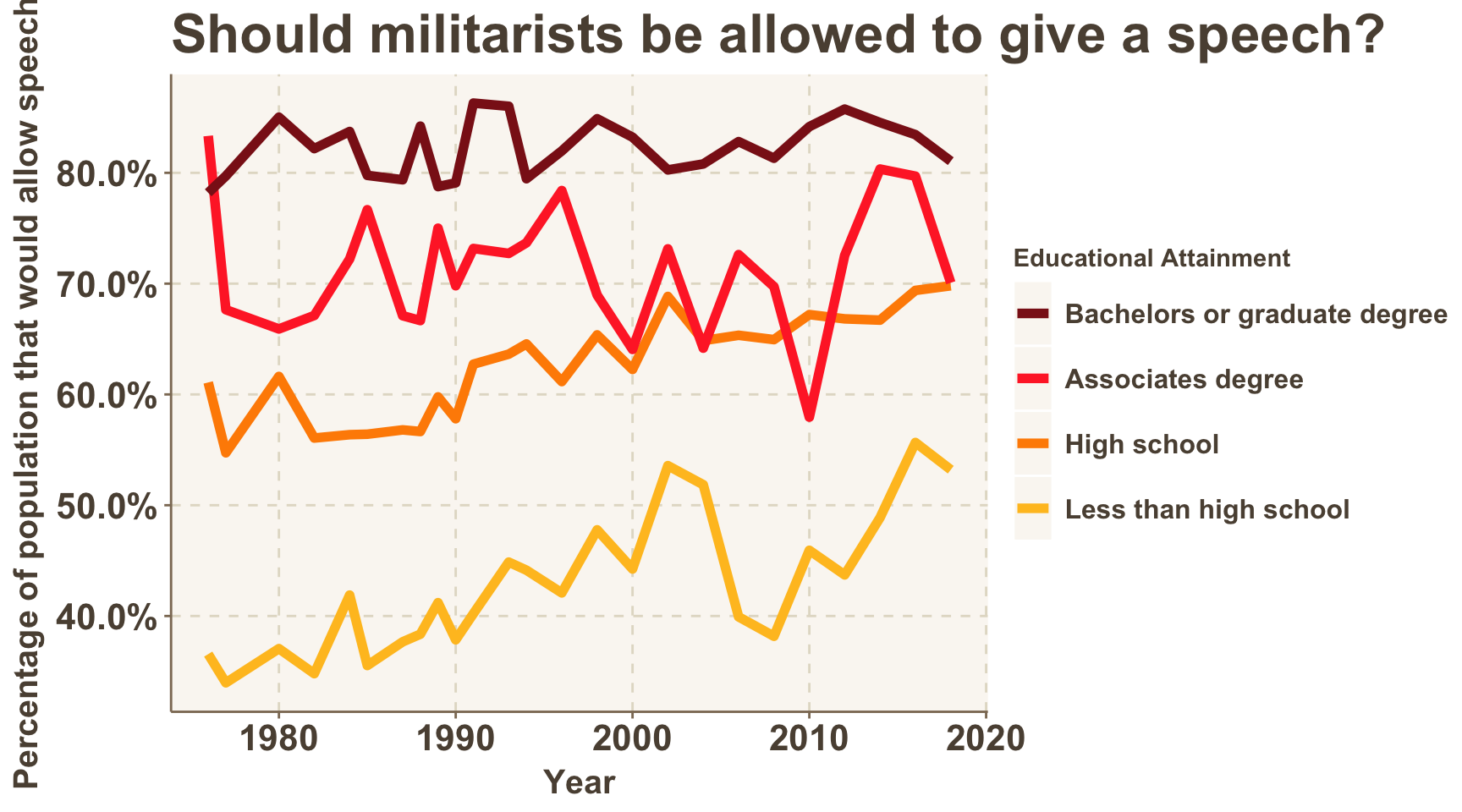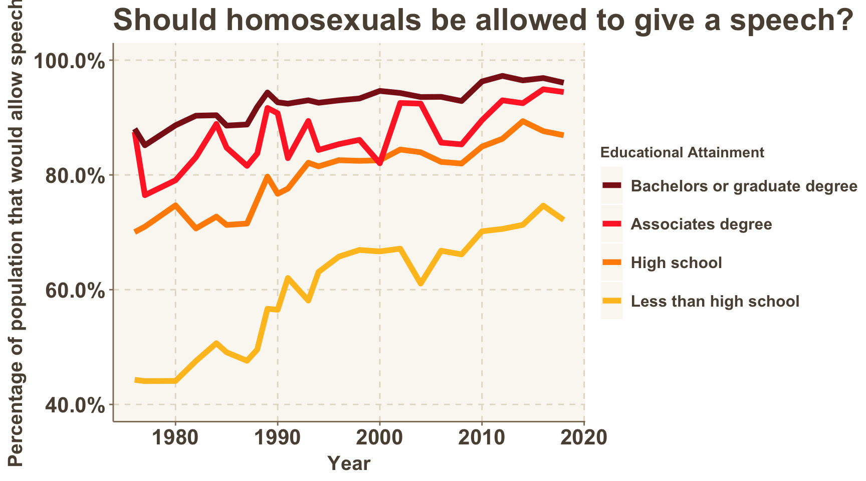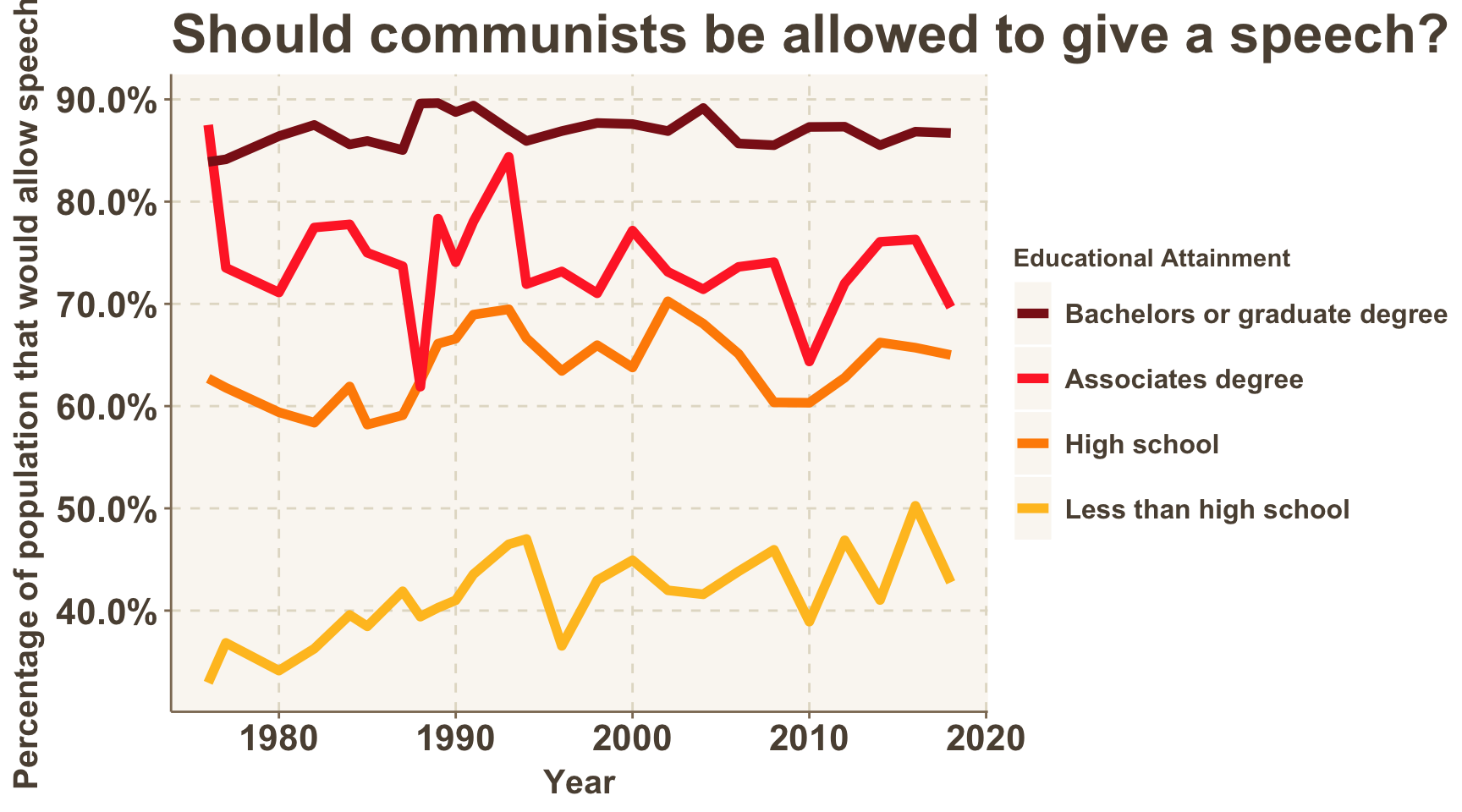 The percentage of survey respondents in favor of allowing different types of speakers appear to be as high as ever. There is a key exception: speakers who are considered racist.