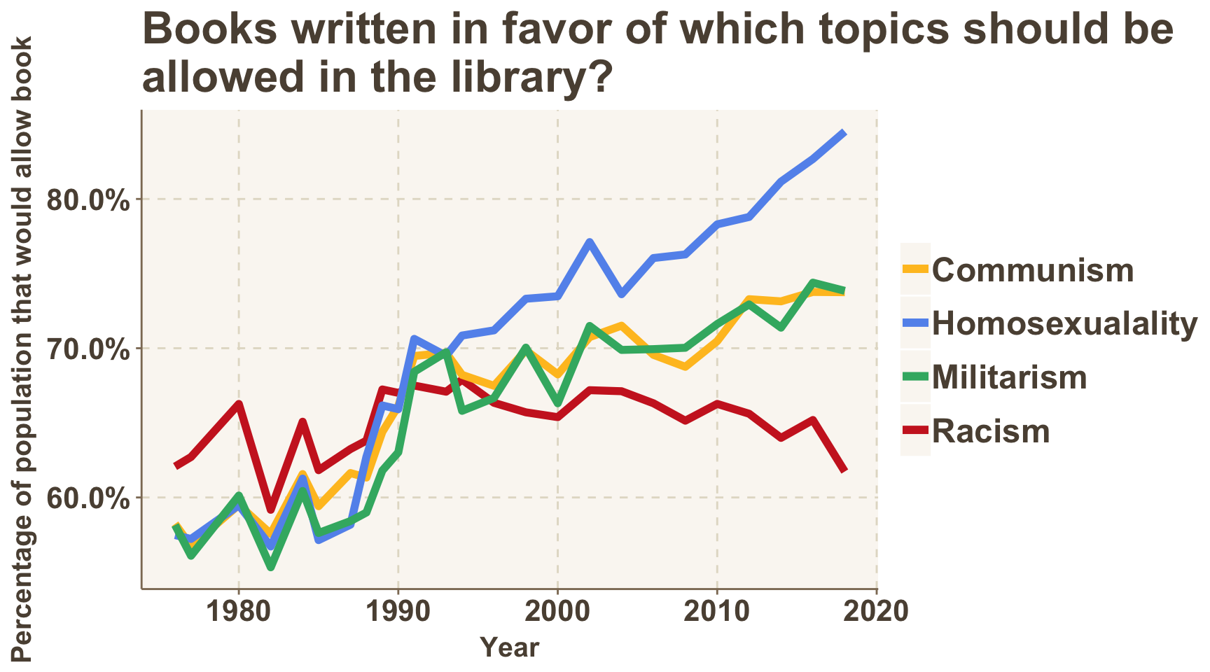 The dip in support for some types of books being allowed in the library is an interesting trend, but is only one data point. More future surveys will be required to see if this trend is significant.